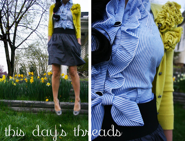 adorable outfit! how did you make your $ store skirt? with a wide band elastic and a $1 shirt? it's very cute! (grey is my absolute favorite color). love your blouse too!