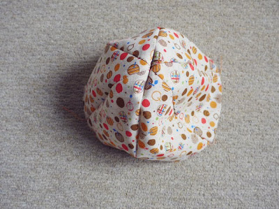 - Put the 3 panelled piece on top of the other, right sides together. Sew along the curved edge. Press seam allowance to one side. Turn right sides out and topstitch along the seamline.